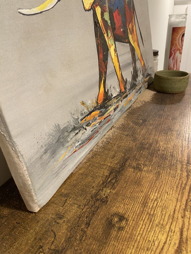 We saw frass, which isn’t out of the ordinary – especially when it comes to Wood Destroying Insects. Drywood termite frass is the hexagonal pellets that feel rough like sandpaper drywood termites create and leave behind as they grind their way through the wood. But where were they coming from? How did they get in? That’s when the Western Fumigation expertise comes in and our inspector found the issue. A frame holding an interesting painting of a bull. And around the frame… more frass.